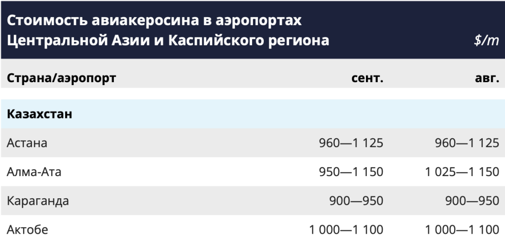 В отчете аналитического агентство Argus в ноябре 2025 года, отмечалось снижение стоимости авиатоплива в аэропортах Казахстана.